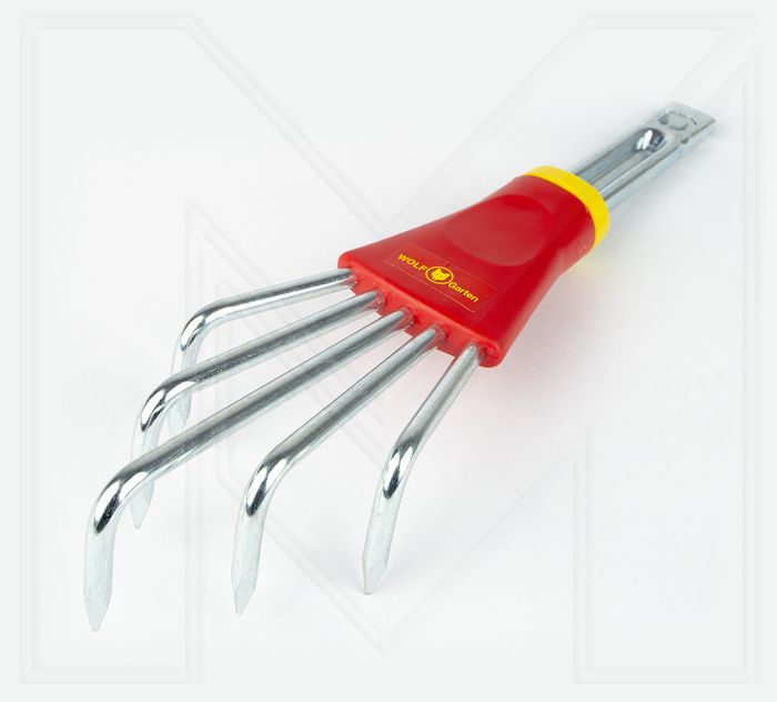 This popular mini cultivator features five strong steel prongs to break through tough soils, and is part of WOLF-Garten’s Interlocken system allowing it to click onto any handle.