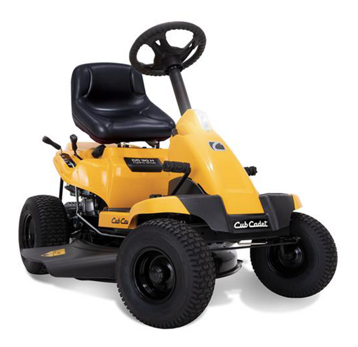 The Cub Cadet CC 30 H 30-inch Compact Riding Lawn Mower has a strong 382cc Cub Cadet engine. It is made to fit in small spaces and can be easily stored. The mower features an LED headlight for better visibility in low light. It also has a comfortable foot-operated hydrostatic transmission to make mowing a breeze.