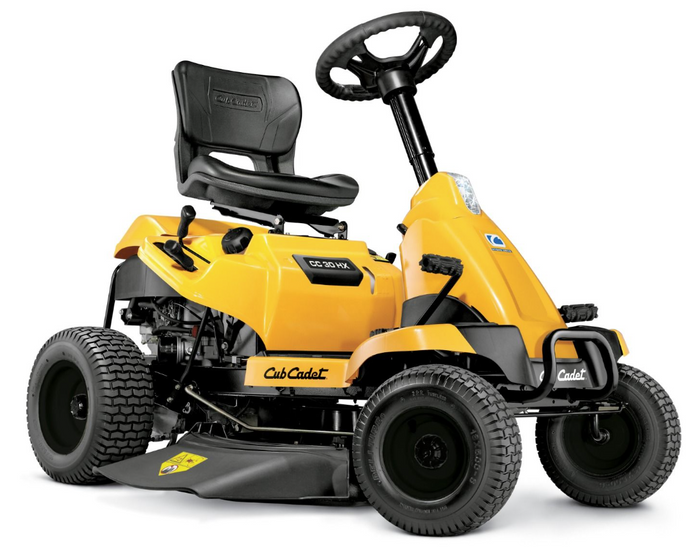 The Cub Cadet CC 30 HX 30-inch Compact Riding Lawn Mower has a strong 382cc Cub Cadet engine. It is made to fit in small spaces and can be easily stored. The mower features an LED headlight for better visibility in low light. It also has a comfortable foot-operated hydrostatic transmission, and a telescopic steering wheel height adjustment to make your ride comfortable.