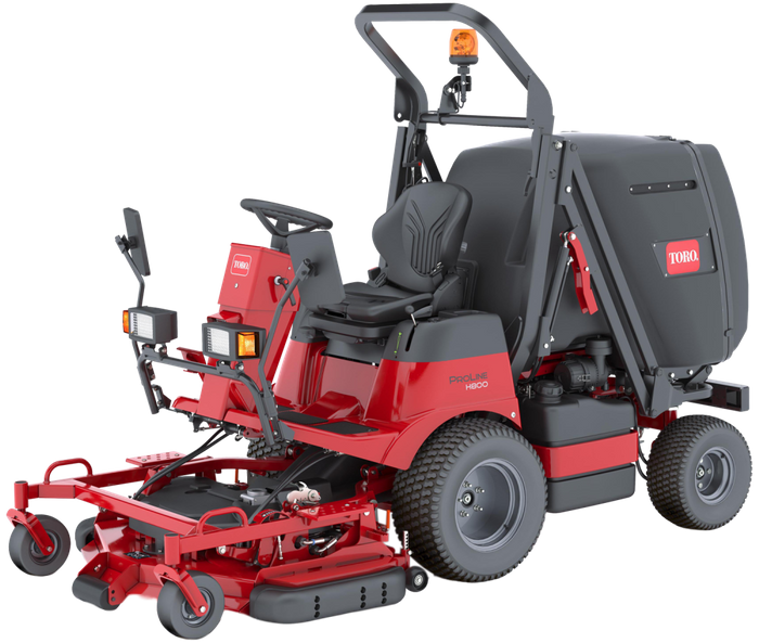 The ProLine H800 direct collect rotary mower with high-lift collection is engineered for maximum lifetime and minimum downtime. The Toro out-front deck features a welded bull nose bumper, heavy-duty caster forks and long-lasting skid protection. With a powerful 25 hp Yanmar® engine, a large 41 litre fuel tank and 810 litre capacity hopper, this mower can go longer without stopping – you don’t even have to stop to adjust the height of cut!
